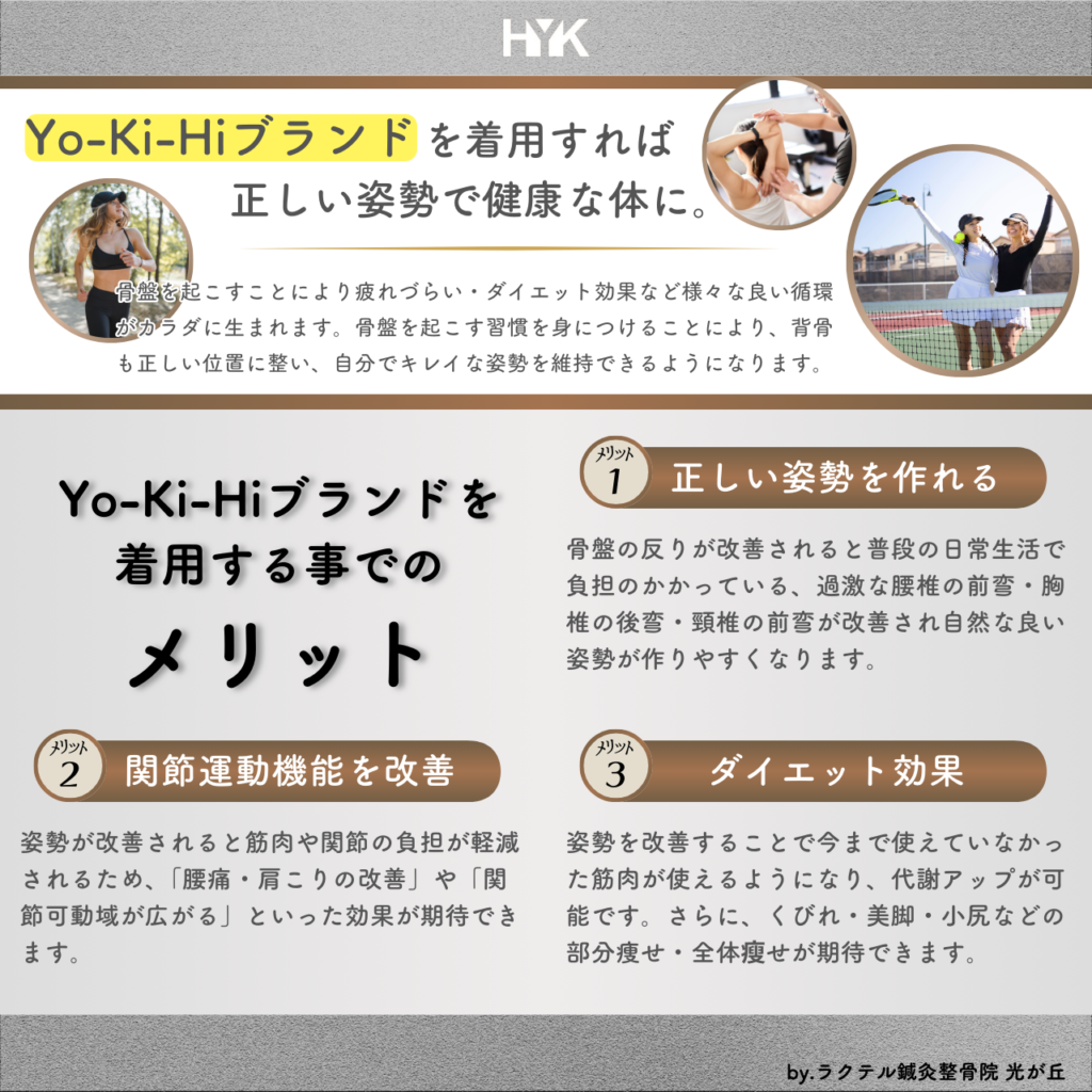 美容と健康維持のために骨盤を起こす。健康腰でキレイ&快適生活をサポート。Yo-Ki-Hiインナーは骨盤を起こし、正しい骨盤の位置を維持するためのサポートインナーです。Yo-Ki-Hiインナーを使うと骨盤が起きあがり良い姿勢をキープしつづけます💓