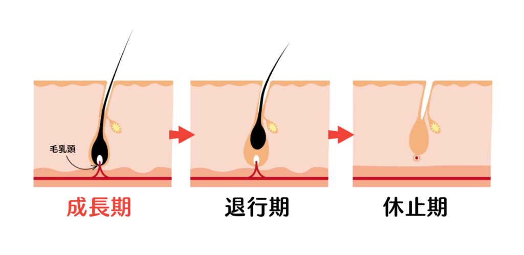 - 成長期…毛乳頭と毛が繋がっていて、毛が成長している時期