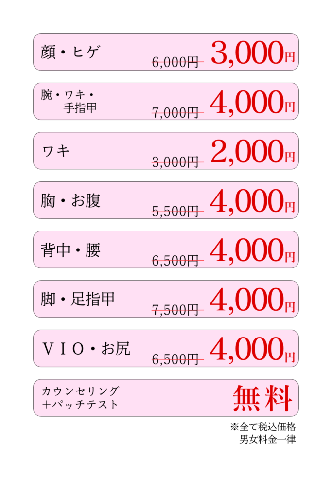 脱毛サロン|料金表